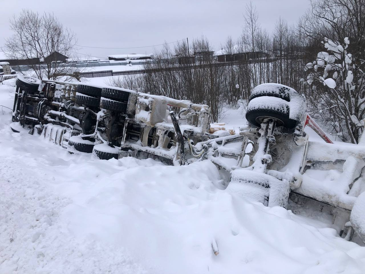 В Кировской области водитель опрокинул лесовоз, груженый пиломатериалами. ДТП произошло 13 февраля на автодороге Советский тракт — Лубигино.