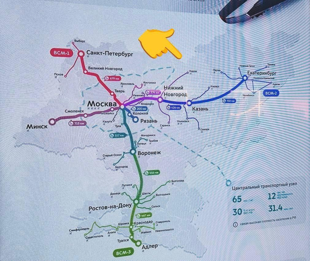 Как пишет «Коммерсантъ», РЖД презентовала «ВСМ-2 Восток» на форуме «Транспорт России». В 2028 году откроется первая в России ВСМ Москва — Санкт-Петербург. Будет разработан новый высокоскоростной поезд, который сможет развивать скорость до 400 км/ч.